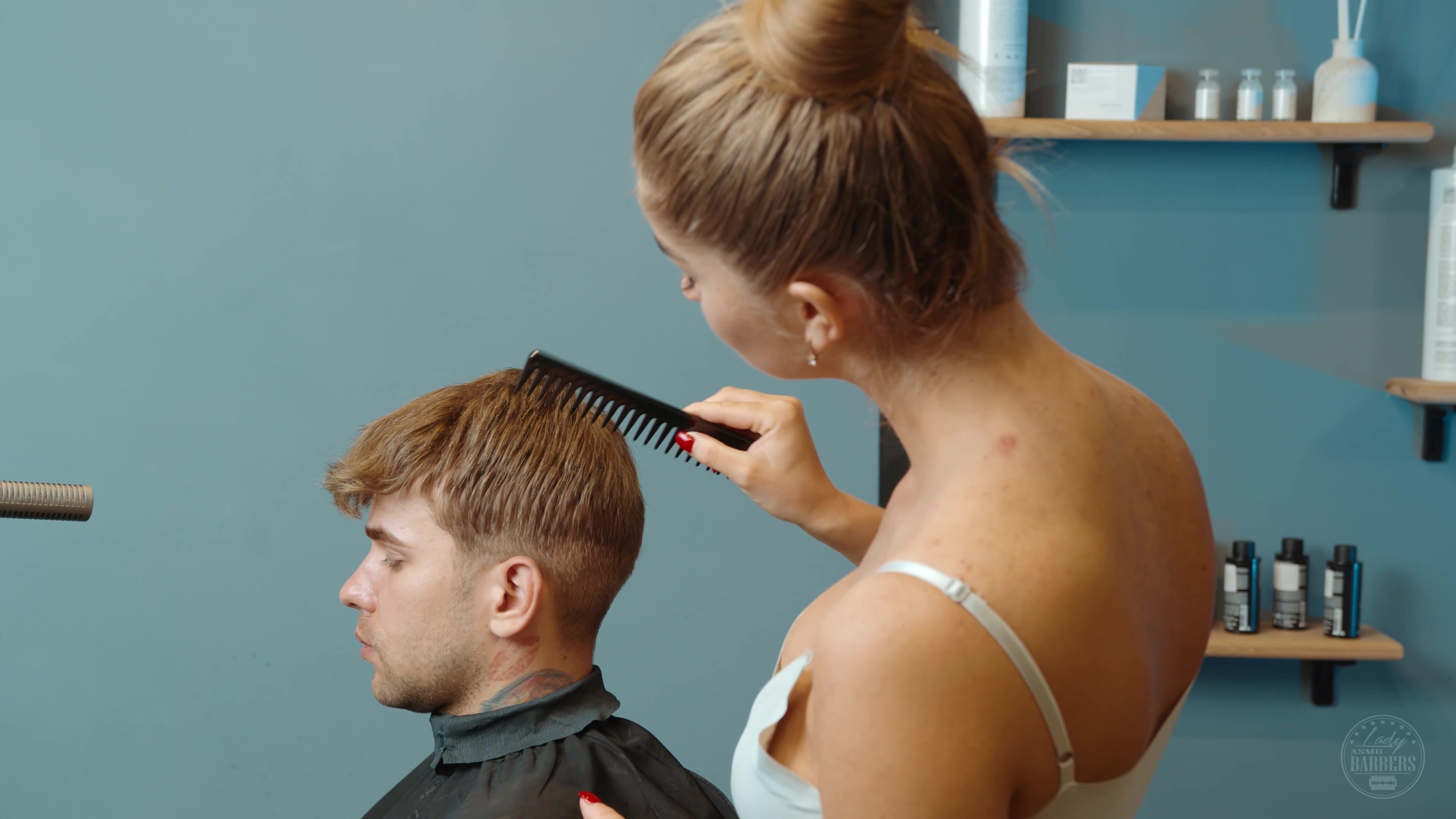 Real Hair Cutting by Kate Lady Barber for Male Client